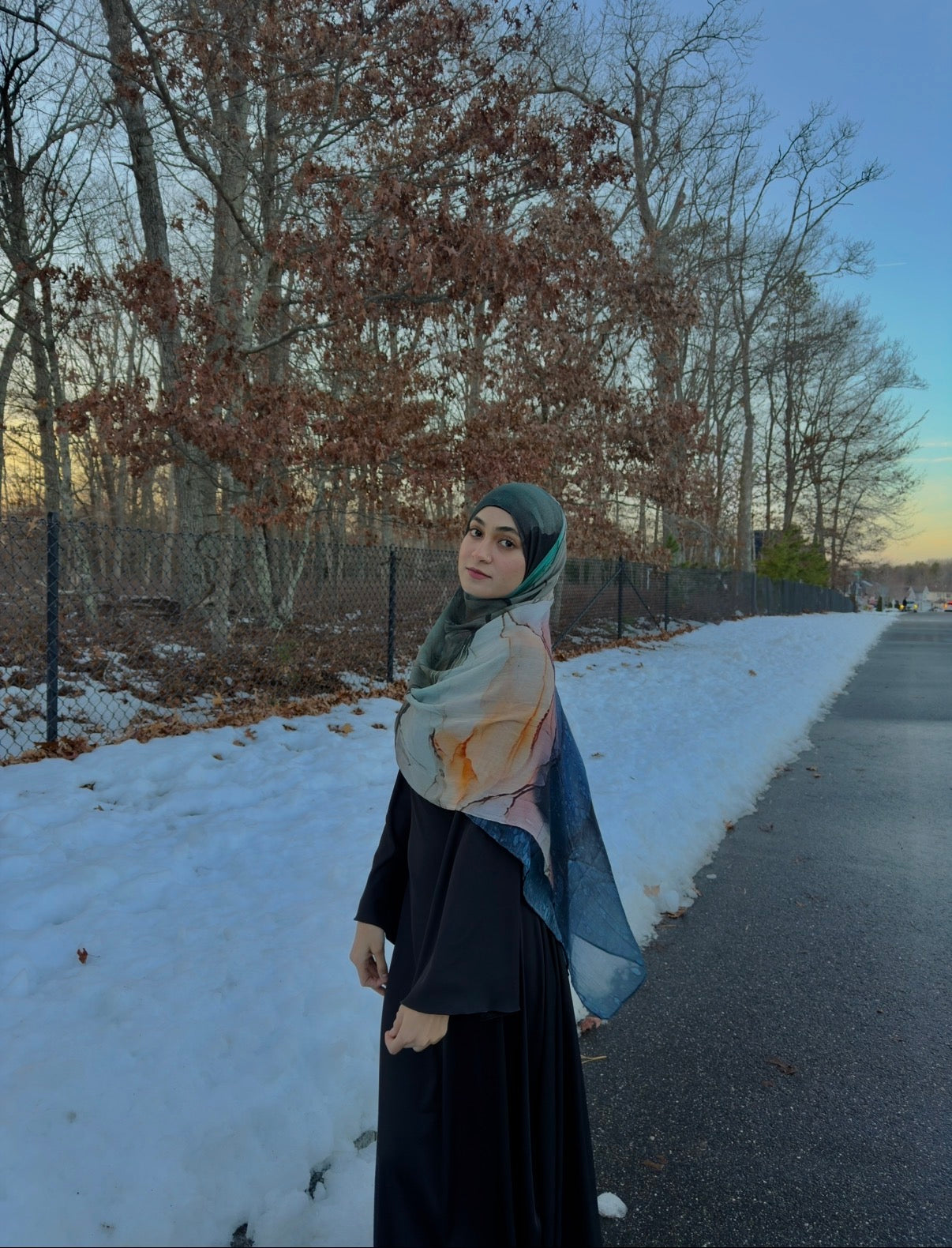 Hues of a frosty winter sky in a modal hijab.